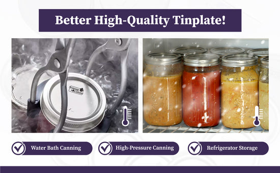 Somang Cuisine stainless steel canning lids are excellent for pressure canning and water bath. No buckling guaranteed!