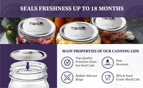 Somang Cusine canning lids regular mouth are doubly coated to ensure a proper seal. The ping from these canning lids is definitely loud!