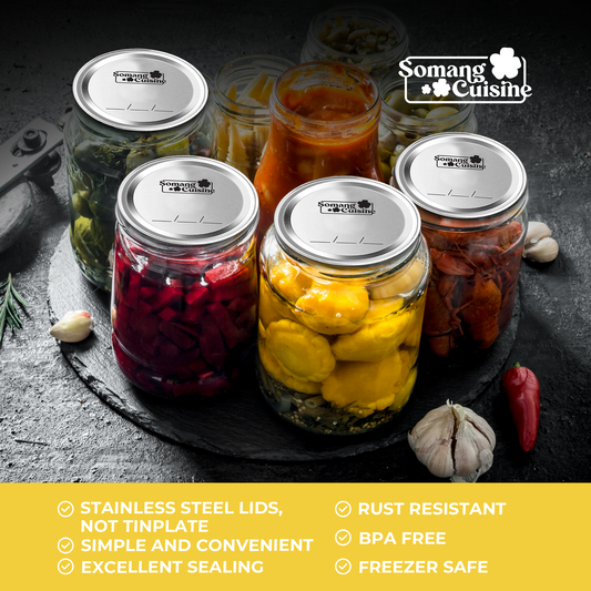 Somang Cuisine - 100 Count: 100 Wide Mouth Canning Lids 304 Stainless Steel
